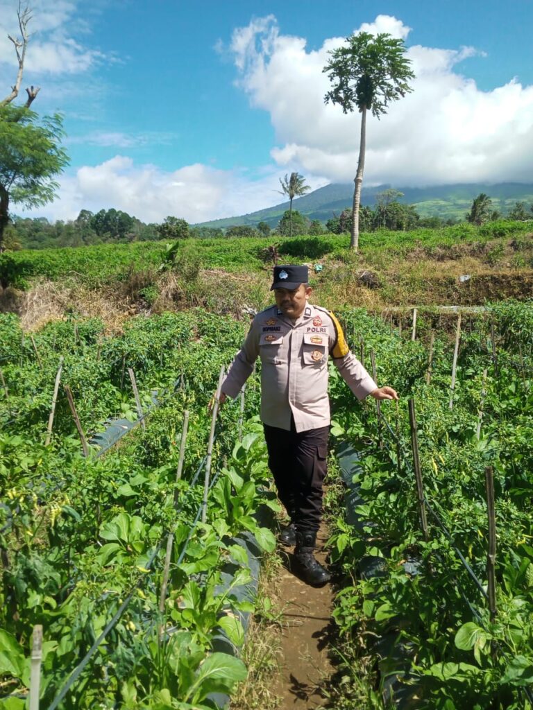 *Bhabinkamtibmas Monitoring Tanaman Sawi dan Tomat di Pagar Wangi, Dempo Utara*