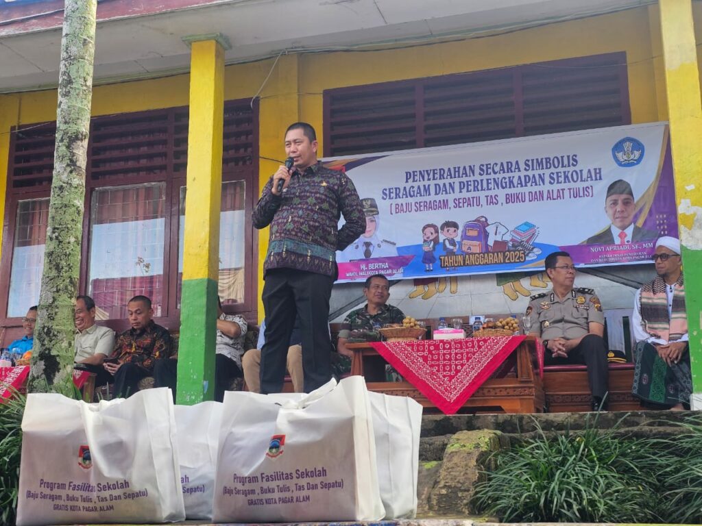 Pagaralam – Wali Kota Pagar Alam, Ludi Oliansyah, secara simbolis melaunching program pembagian seragam dan perlengkapan sekolah gratis bagi pelajar SD dan SMP Kota Pagar Alam, bertempat di SD Negeri 23 Simpang Belumai Kota Pagar Alam, Sabtu, 13 Desember 2025.