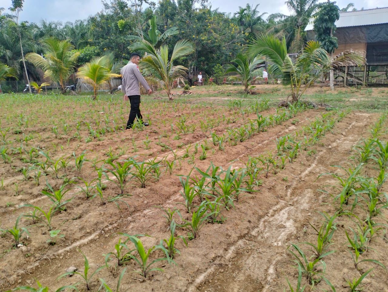 Polres Muratara Dukung Ketahanan Pangan, Bhabinkamtibmas Cek Lahan Jagung di Desa Bina Karya