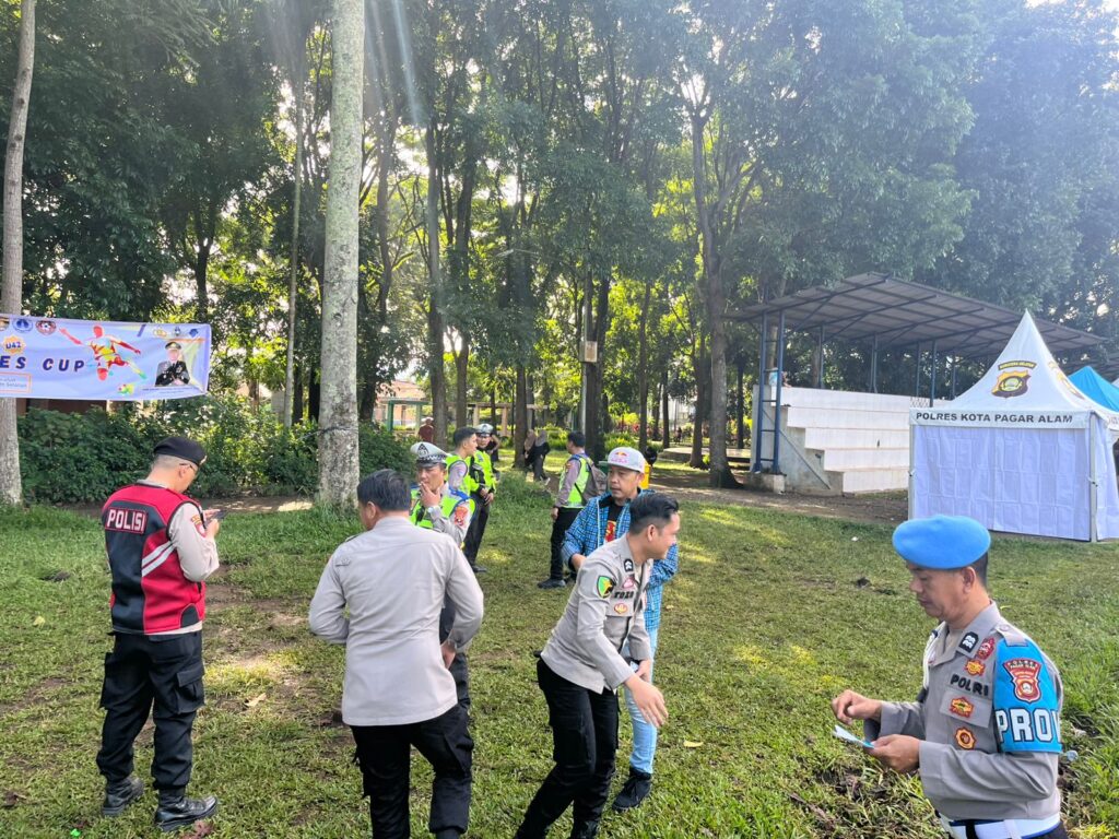 Pagar Alam – Polres Pagar Alam melaksanakan pengamanan pada hari kedua kegiatan Turnamen Sepak Bola Kapolres Cup U-42 Tahun 2025 yang berlangsung di Alun-Alun Selatan Kota Pagar Alam, Minggu, 13 Desember 2025. Kegiatan olahraga ini kembali menyedot perhatian masyarakat dan berlangsung meriah dengan antusias penonton yang tinggi.Pengamanan dipimpin langsung oleh Kapolres Pagar Alam AKBP Januar Kencana Setia Persada, S.I.K., didampingi Kabag Ops AKP Ramsi, S.H., dengan melibatkan 36 personel. Sejak pagi hari, personel telah disiagakan di sejumlah titik untuk memastikan kelancaran pertandingan, arus penonton, serta mencegah potensi gangguan kamtibmas.