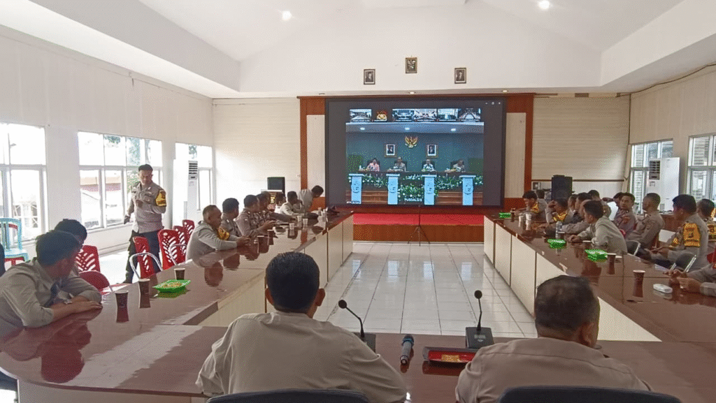 HumasRes Pagaralam – Polres Pagar Alam di bawah kepemimpinan Kapolres AKBP Januar Kencana Setia Persada, S.I.K., mengikuti kegiatan Zoom Meeting Penerimaan Siswa Baru SMA Taruna Kemala Bhayangkara. Kegiatan ini dilaksanakan pada Rabu, 28 Oktober 2025, bertempat di Aula Wirasatya 96 Mapolres Pagar Alam.