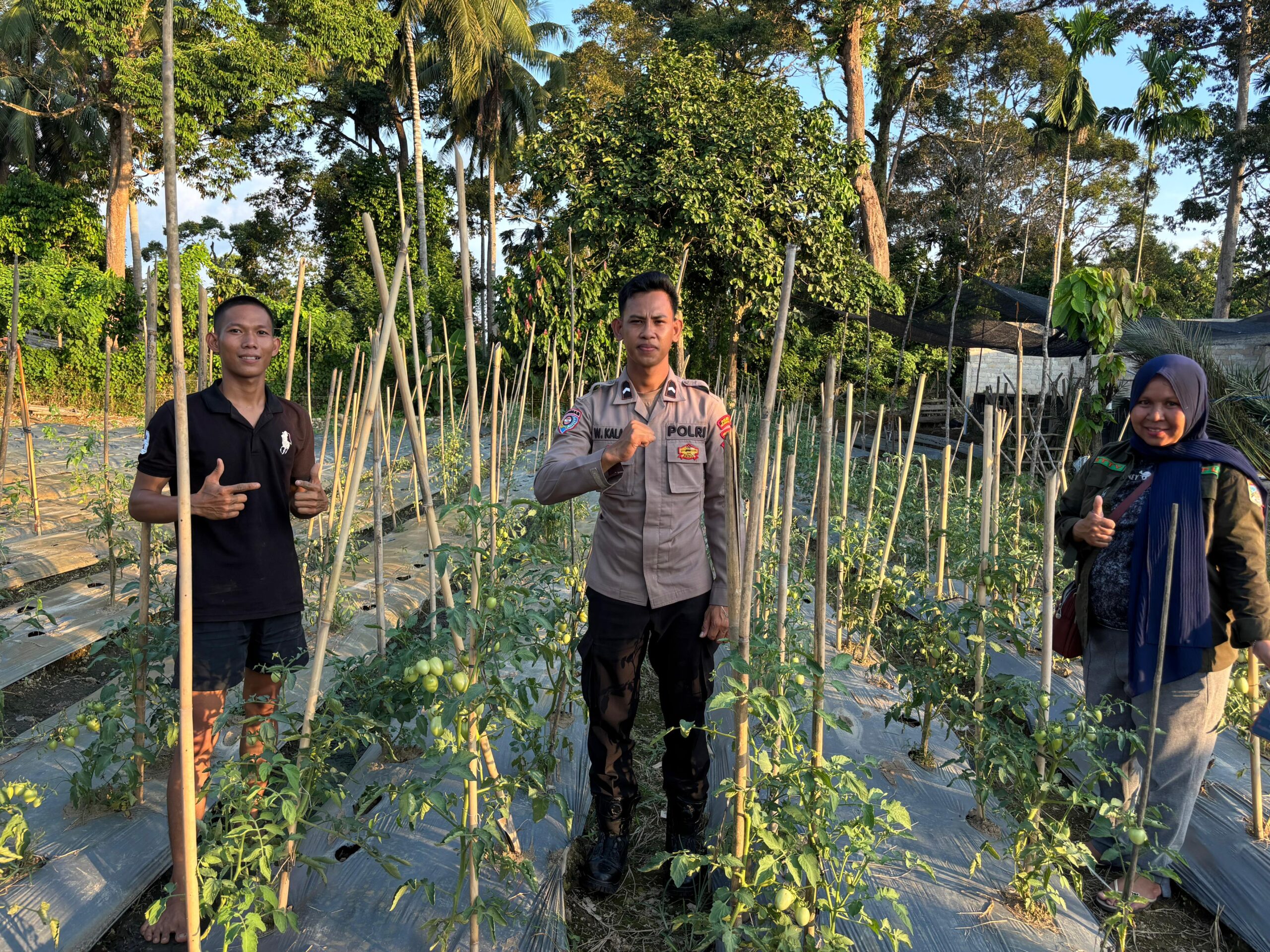 Muratara, Sumsel – Personel Satuan Pembinaan Masyarakat (Sat Binmas) Polres Musi Rawas Utara (Muratara) melaksanakan kegiatan monitoring tanaman tomat dalam program Pekarangan Pangan Lestari (P2L) di Desa Karang Agung, Kecamatan Rupit, pada Jumat (24/10/2025) sore.