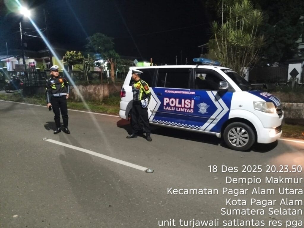 Pagaralam – Polres Pagar Alam melalui Satuan Lalu Lintas menurunkan Patroli KTL monitoring Dari Aksi Balap Liar di kota pagaralam. Kegiatan ini dilaksanakan Patroli KTL pada hari Kamis18 Desember 2025 pukul 20.00 sd dini hari.