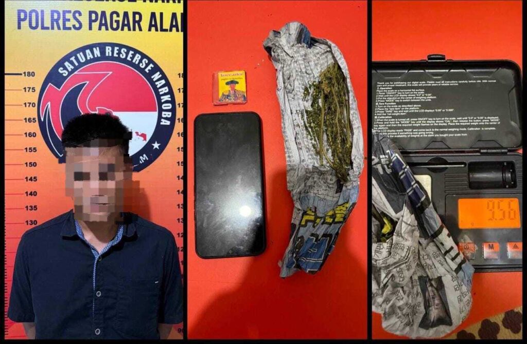 Satresnarkoba Polres Pagar Alam berhasil mengamankan seorang pria berinisial AF (30) di Simpang Padang Karet dengan barang bukti ganja seberat 9,56 gram. Pelaku mengaku membeli ganja tersebut untuk dikonsumsi sendiri.