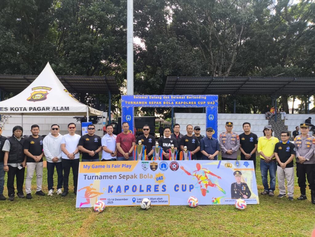 Pagaralam – Suasana Alun-Alun Selatan Kota Pagar Alam tampak semarak pada Sabtu pagi, 13 Desember 2025. Turnamen Sepak Bola Kapolres Cup U-42 Tahun 2025 resmi digelar dan menjadi magnet bagi pecinta olahraga, sekaligus ajang mempererat kebersamaan antar daerah di Sumatera Selatan.Guna memastikan kegiatan berjalan aman dan lancar, Polres Pagar Alam menerjunkan 36 personel pengamanan yang dipimpin langsung oleh Kapolres Pagar Alam AKBP Januar Kencana Setia Persada, S.I.K., didampingi Kabag Ops AKP Ramsi, S.H. Apel kesiapan dilakukan sejak awal sebagai bentuk keseriusan Polri dalam memberikan rasa aman bagi peserta maupun penonton.Pembukaan turnamen berlangsung khidmat dan penuh antusias.